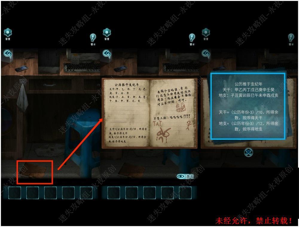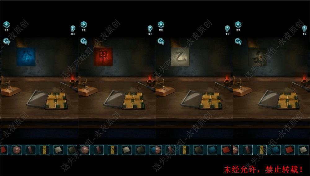 149.进入卧室,调查书桌,先点击开关打开台灯,对台灯使用【蓝色碎片】【红色碎片】【白色碎片】【黑色碎片】,得知,蓝色是癸,红色是甲,白色是乙,黑色是壬。149