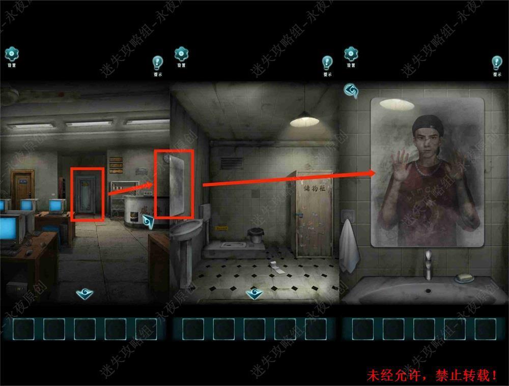 130.调查厕所门口,触发剧情对话,点击镜子可观察到,杨文昉被关入镜中。