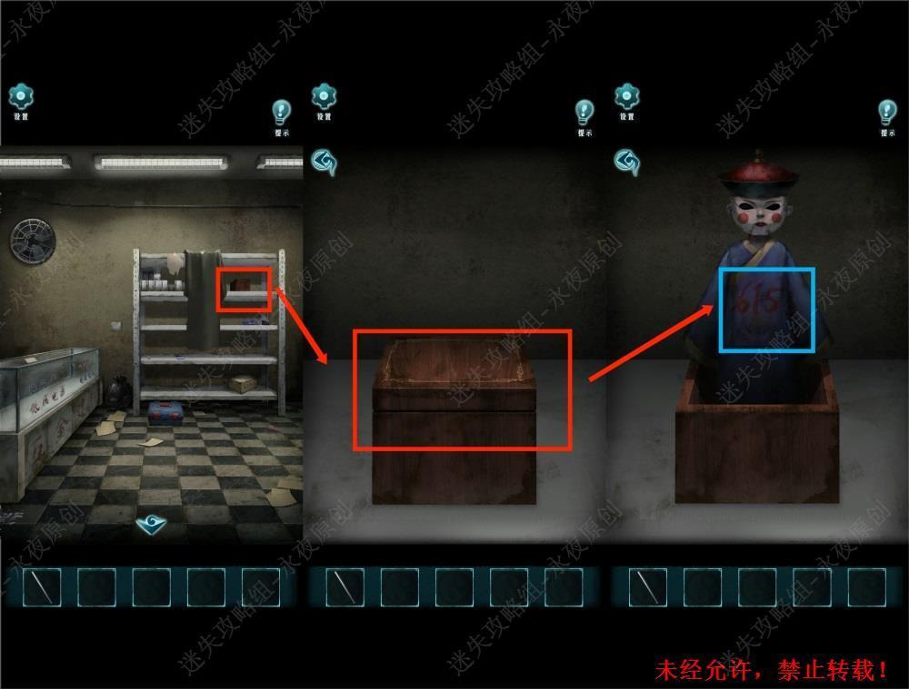 123.调查架子,调查木盒,观察蹦出的僵尸身上的数字615。123