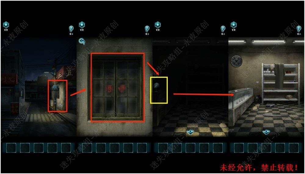 121.调查此处,调查五金店窗户,进入五金店内部场景,拾取【镜子】,按下方按钮切换场景,将【镜子】交给杨文昉,点击镜子调整光束至一定的角度,进入五金店,点击开关解锁灯光1211,1212