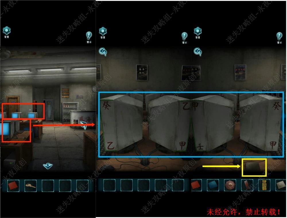 148.调查大厅两排电脑,调查电脑上的干支编号和绿色部分。可知绿色部分在甲的左上角和右下角,乙在左下角和右上角,在壬的左下角和右下角,在癸的左上角和右上角。拾取【黑色碎片】148