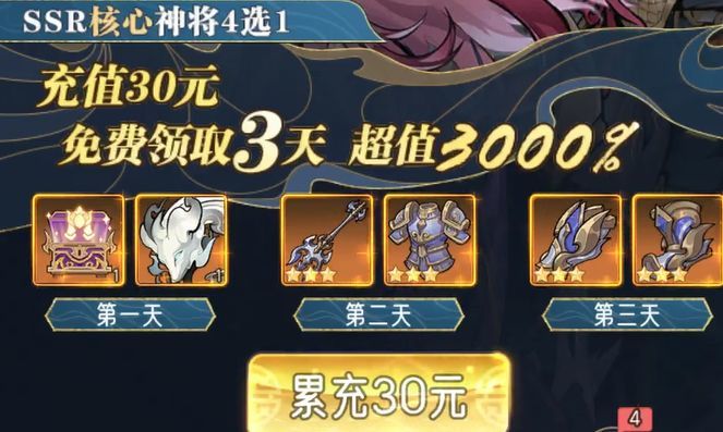 游戏中有各种基金礼包,这个可以看情况购买另外游戏还会触发一些高折的限时弹窗礼包,错过就么有了,性价比真的很高