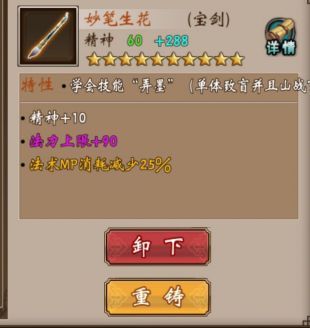 熔炼之后,基本特性是学会弄墨,其实就是单体致盲,附加一个降山地能力,基本可以忽略的。三属性是法术MP节蓝25%,也很实用,基本可以替代白金装备归元剑了。这样一个天晶陨铁的熔炼代价,就有这2个作用,已经非常不错了。