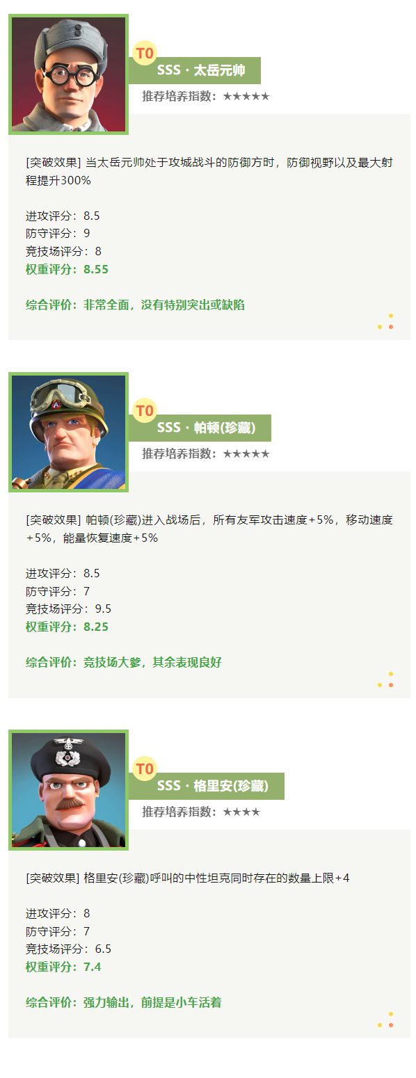 T0级别推荐3位指挥官