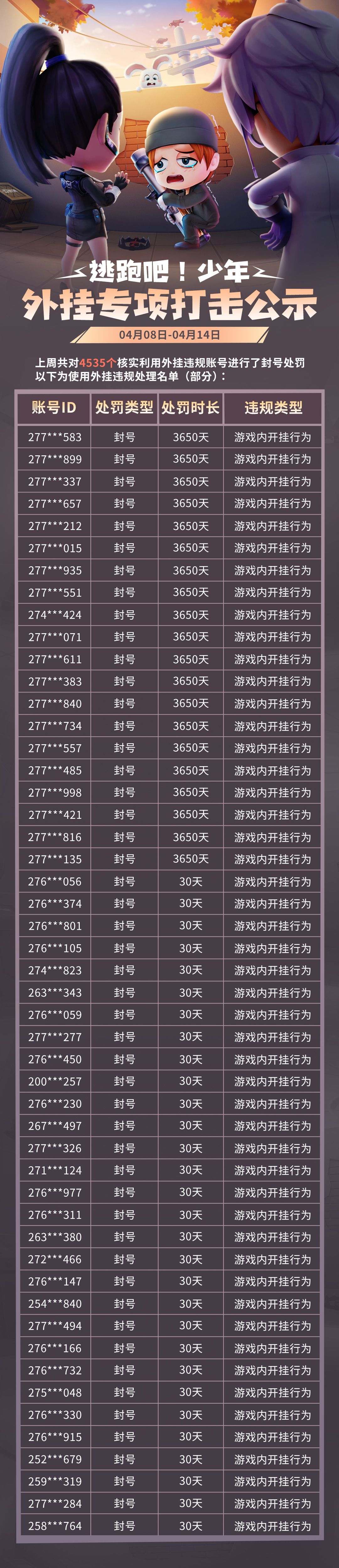 游戏安全处罚及体验优化公示第十六期(4月08日——4月14日)