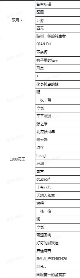 【活动开奖通知】疯狂星期四 | 今天的菜单是月卡和灵玉哦~