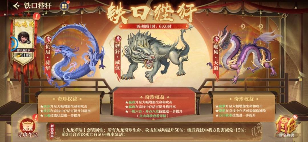 赢政专属奇珍「狴犴·威仪」、扶苏专属奇珍「负屃·荷华」的奥妙等你来体验!