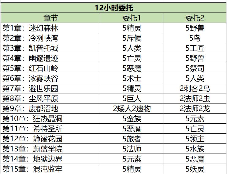 3.利用好12小时委托,每天尽量在需要的12小时委托的章节刷任务,以便增加刷出12小时委托的几率。