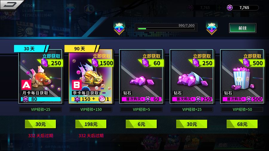 1.开服第1天,各种高性价比礼包买买买,再充一年的月卡和季卡,把VIP等级拉到v6。