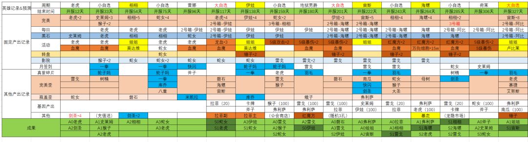 附上截至目前,所有精英英雄获取记录: