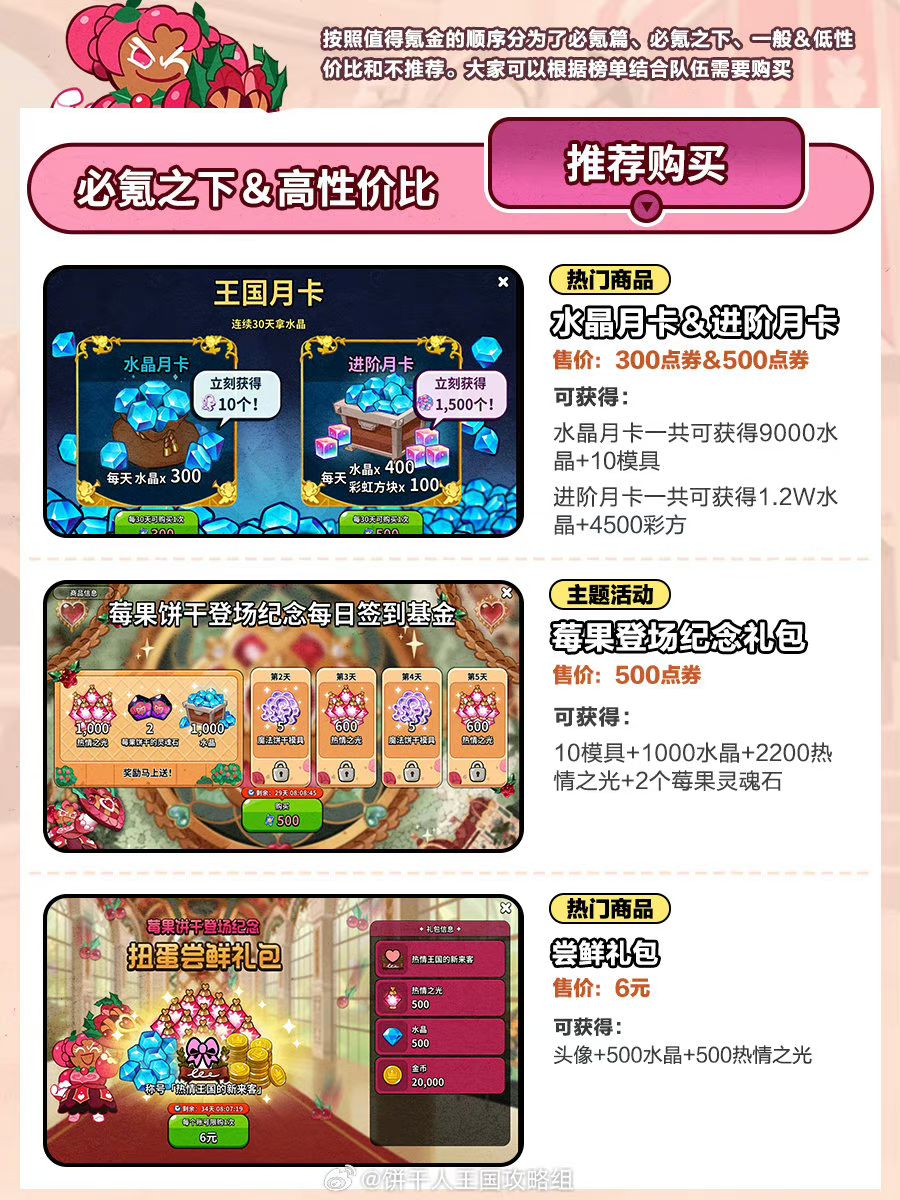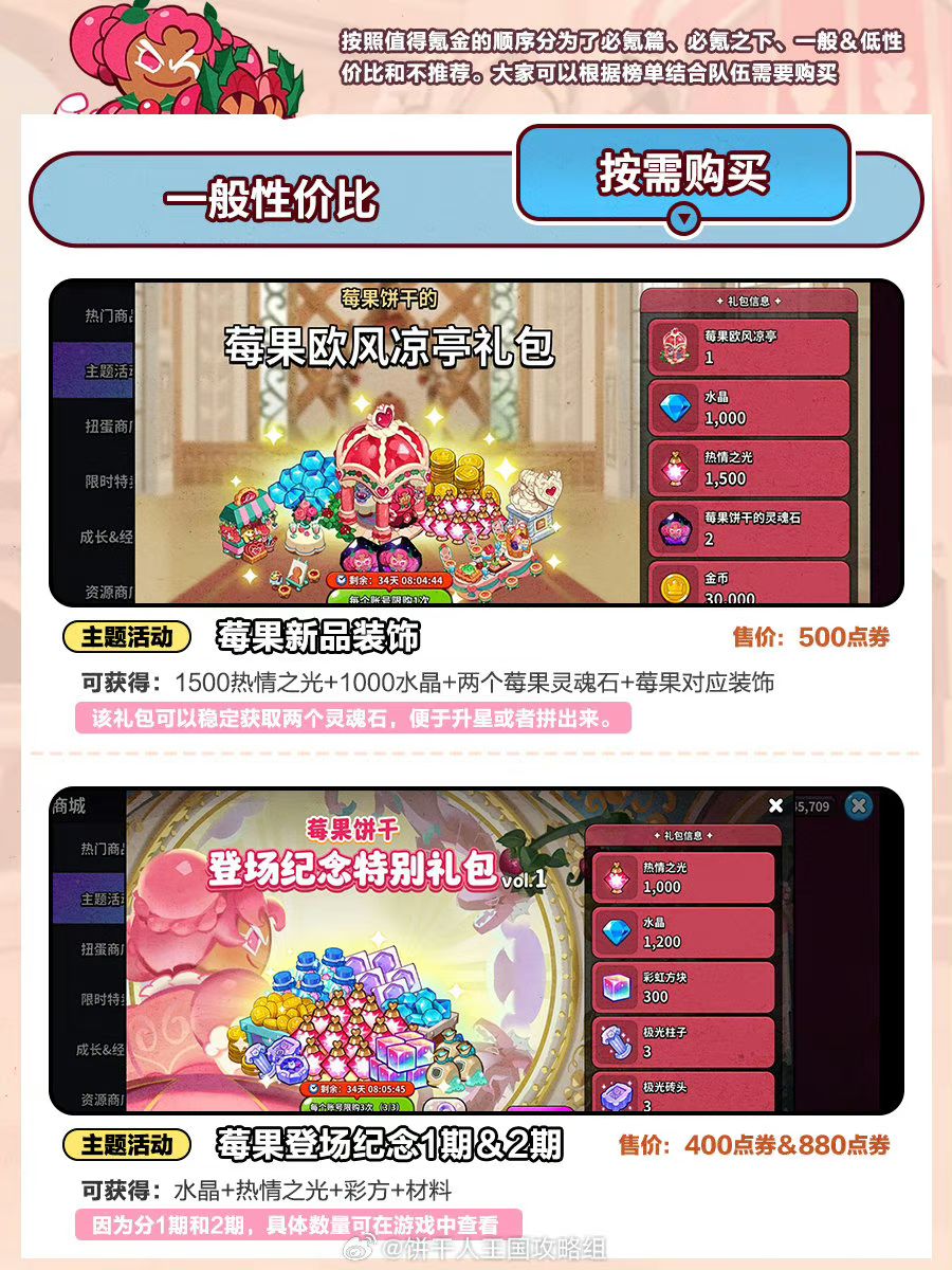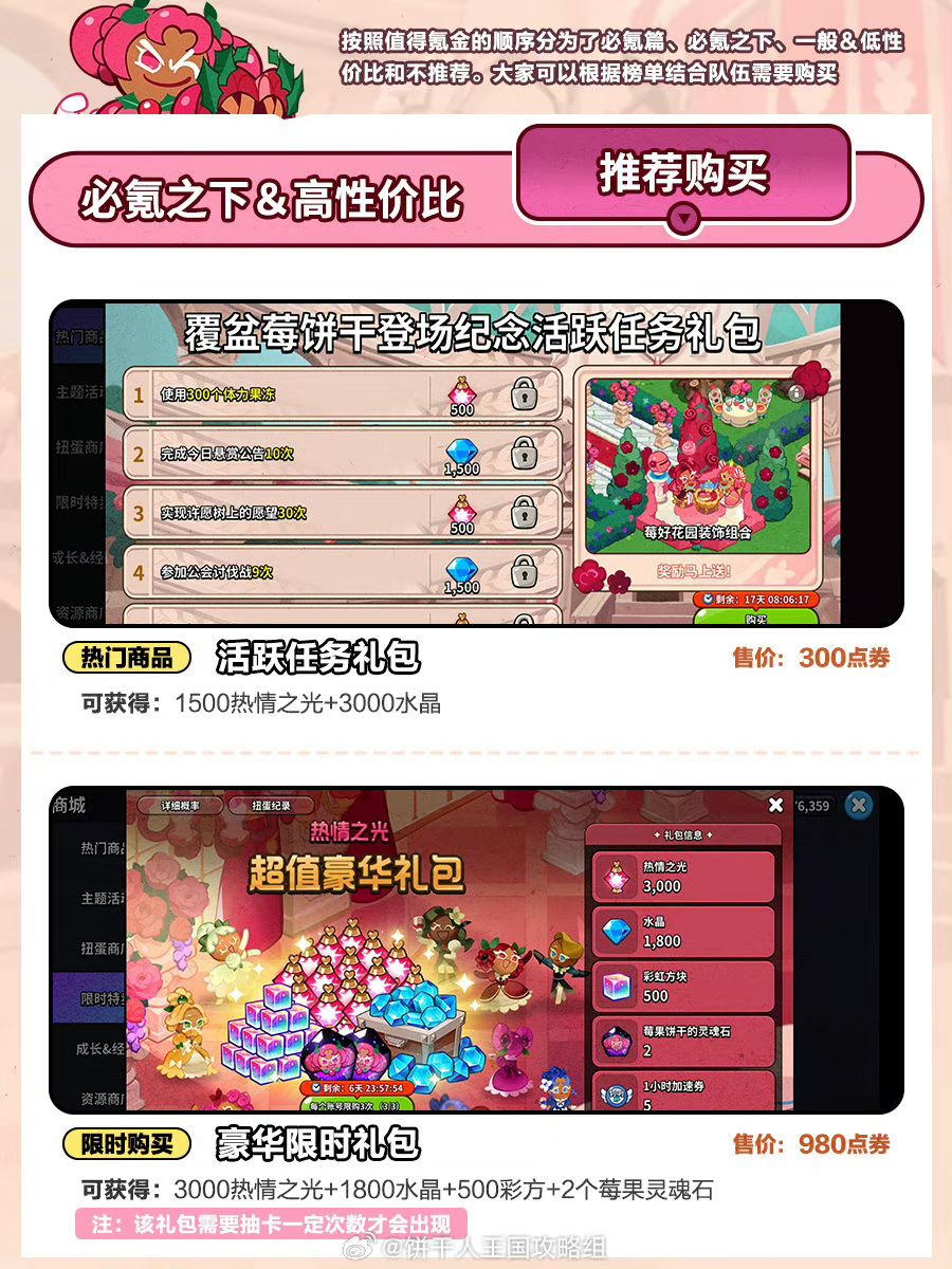莓果版本礼包推荐,如果你的号上没找到对应礼包,可能是还没达到触发条件,比如莓果首获礼包、豪华限时礼包等。