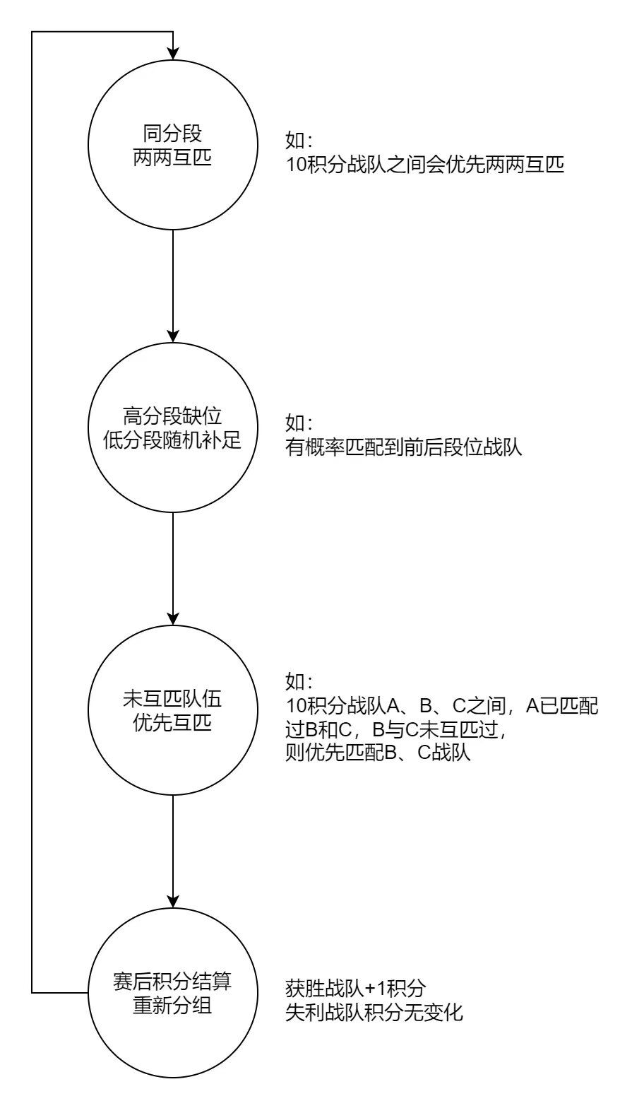 如:积分同为10分的战队出现1支未能与10分战队匹配的情况时,则会随机匹配到1支9分的战队。