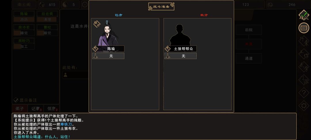 (2)继续前往 胡同→老宅→后院→干涸的水井 选择进入,触发战斗。