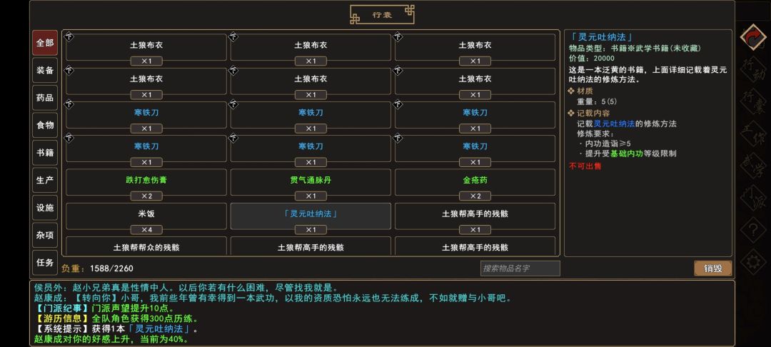 (3)[灵元吐纳法※书籍/武学书籍]×1。