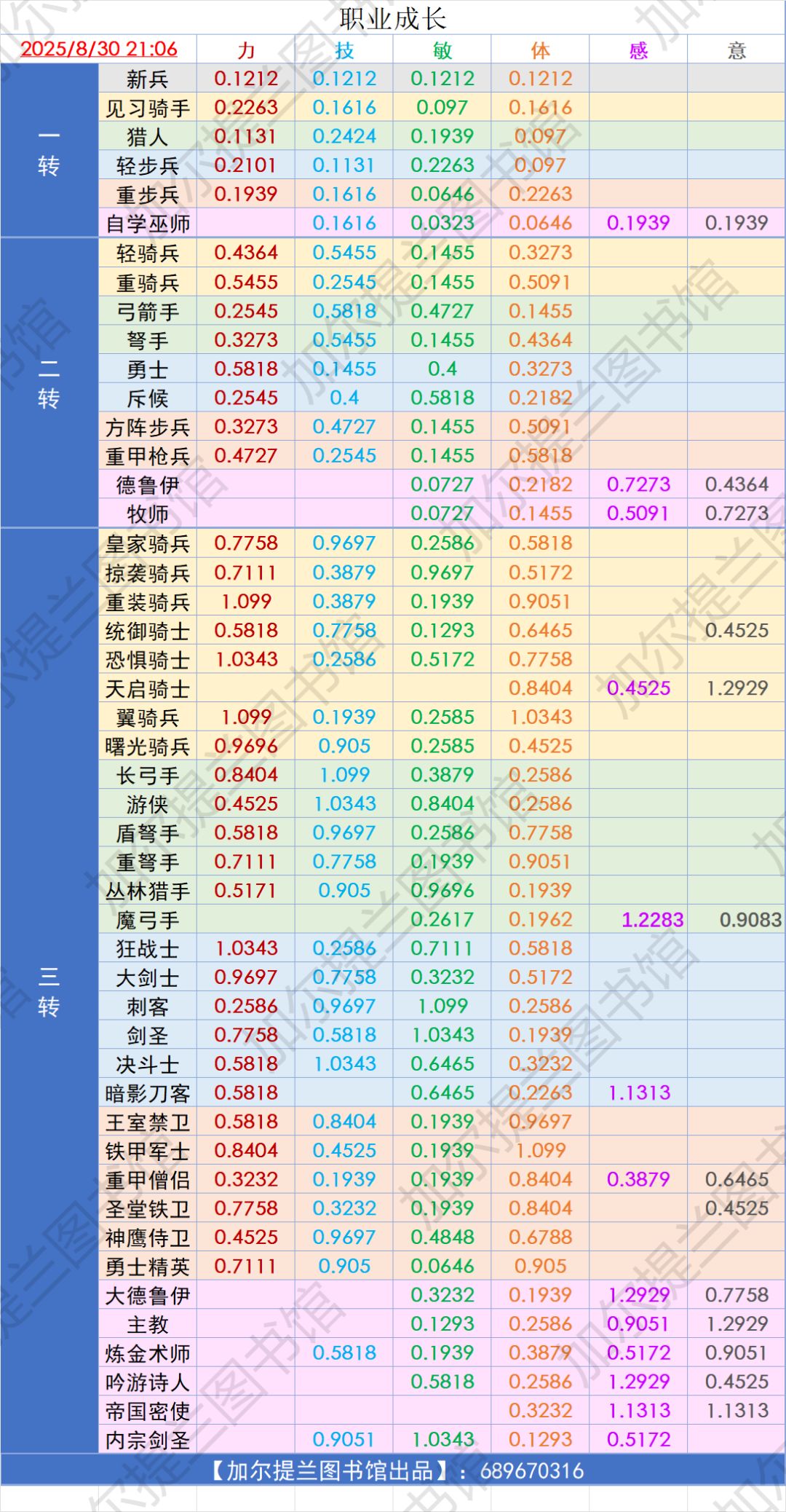 表格继承自[玛俐我老婆]大佬,未来将跟随诸神皇冠持续更新(非不可抗力不暂停更新),如有错误欢迎指正,会尽快进行修改。