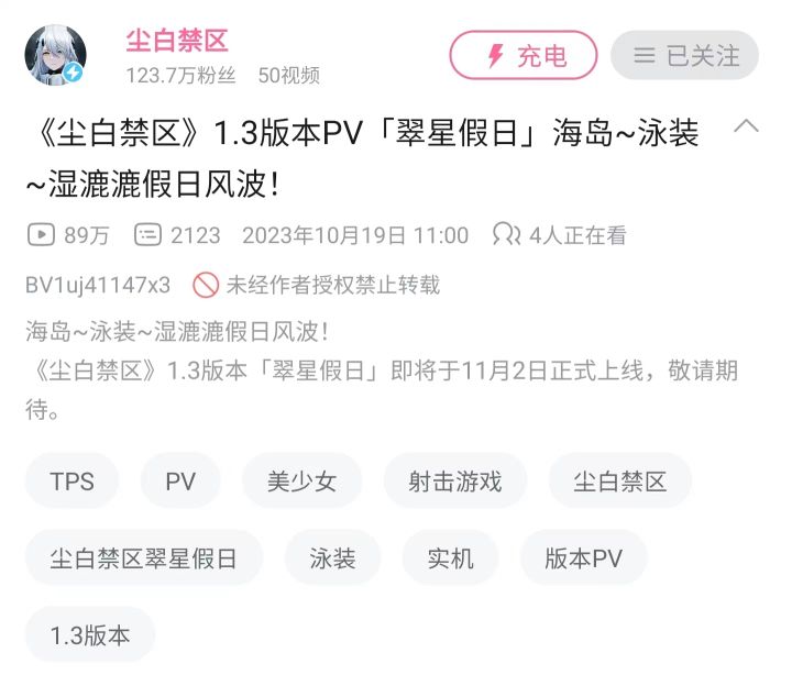 在我看来,尘白能实现口碑和流水的双重逆袭,原因也很简单,那就是尊重玩家,听从玩家的建议,无论是策划文案半夜开直播,还是根据玩家建议修改皮肤,甚至是取消男性后勤角色,尘白把玩家的喜好当成根本,尊重玩家,剧情和游戏角只色服务玩家,玩家也更愿意为之付费并且宣传游戏,目前尘白1.7版本的PV点击量已经高达148万多。