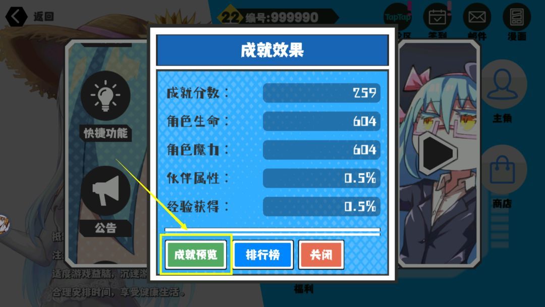 游戏接入了TapTap服务中的成就系统,