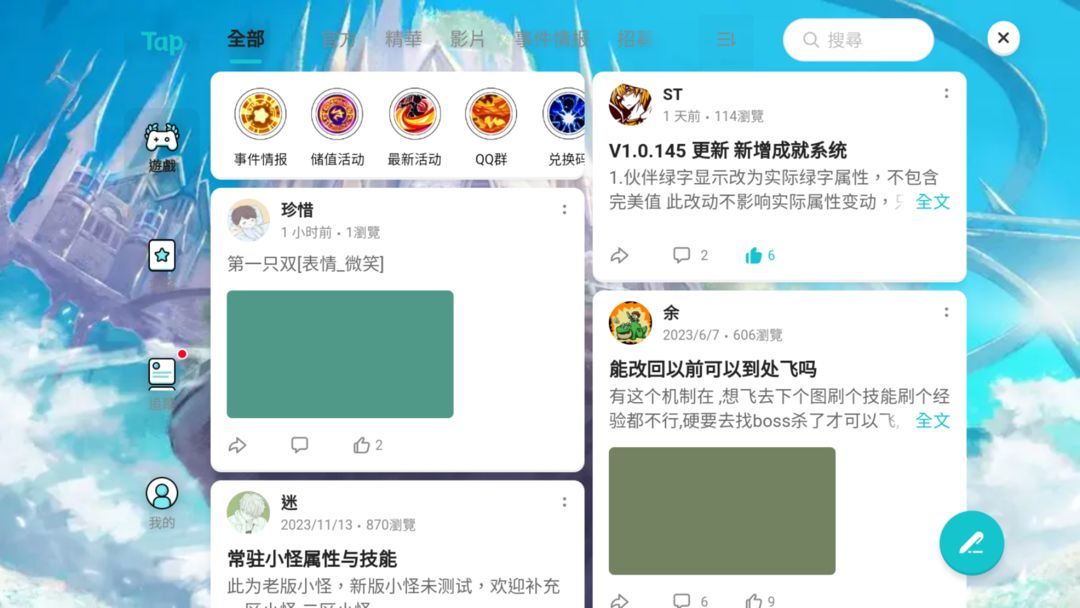 游戏接入了TapTap服务中的Tap论坛/社区,