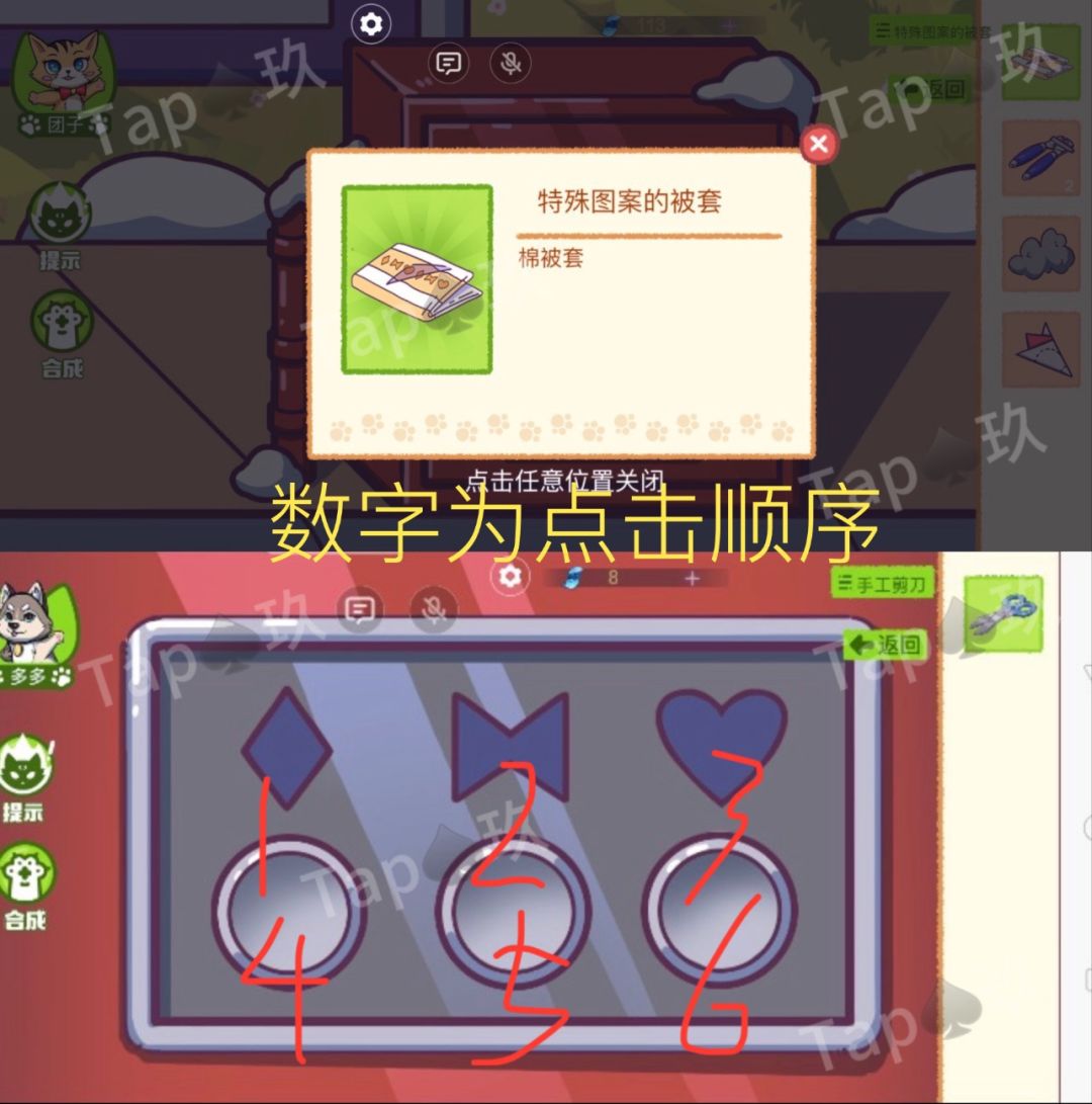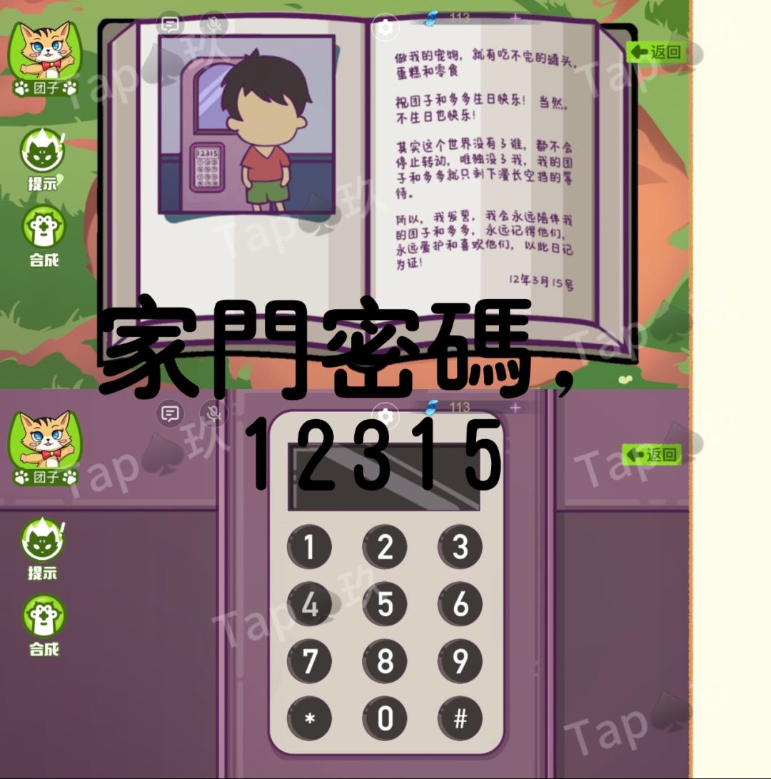 5-根据密码本里的线索【12315】打开家门,团子多多都可以操作。