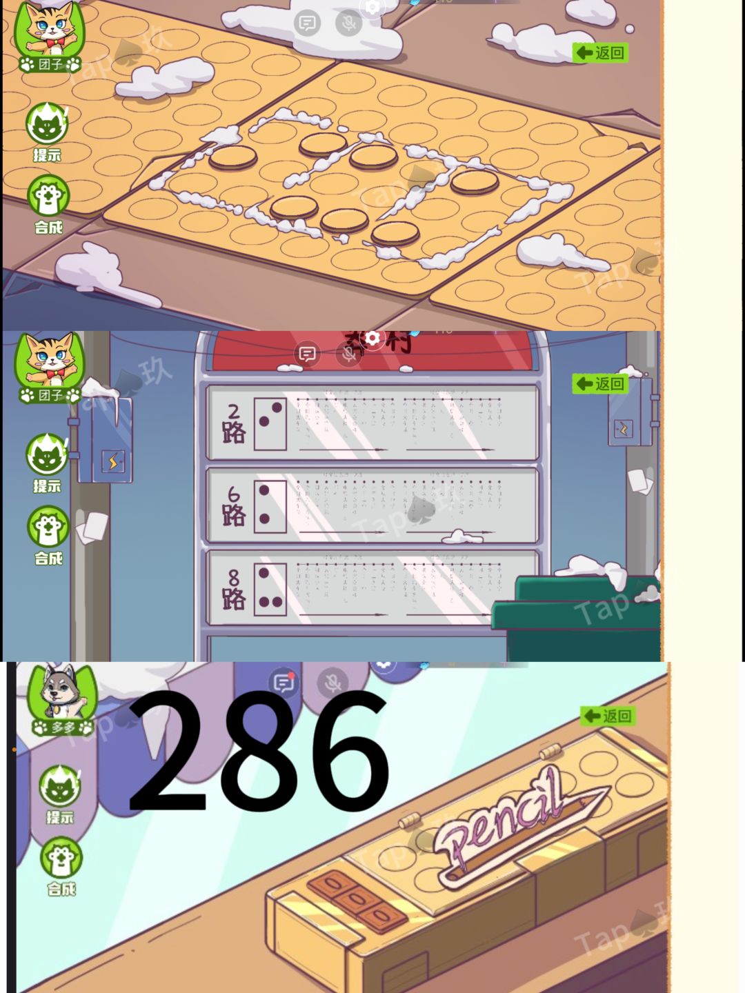 1-点击小卖部左边窗户的箱子,根据多多视角站牌和地上的图案获得密码(286),打开获得【剪刀】传给团子