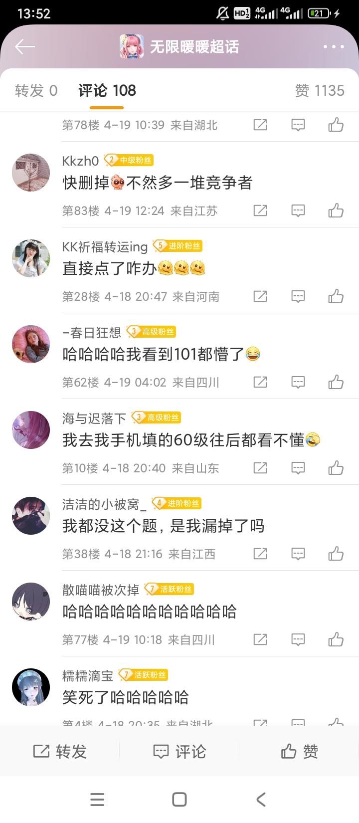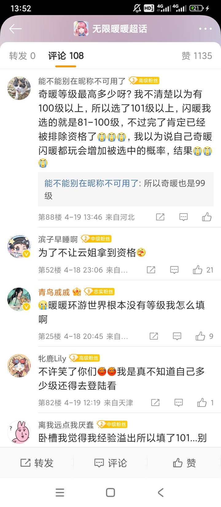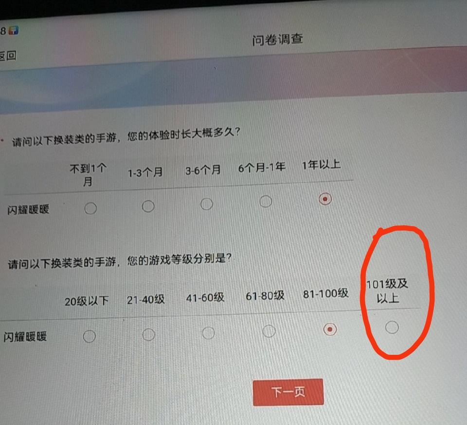 网友发现在问到闪耀暖暖换装手游的游戏等级选项中有一个“101级及以上”