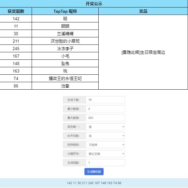 根据开奖结果显示,恭喜以下幸运的玩家们获得奖品: