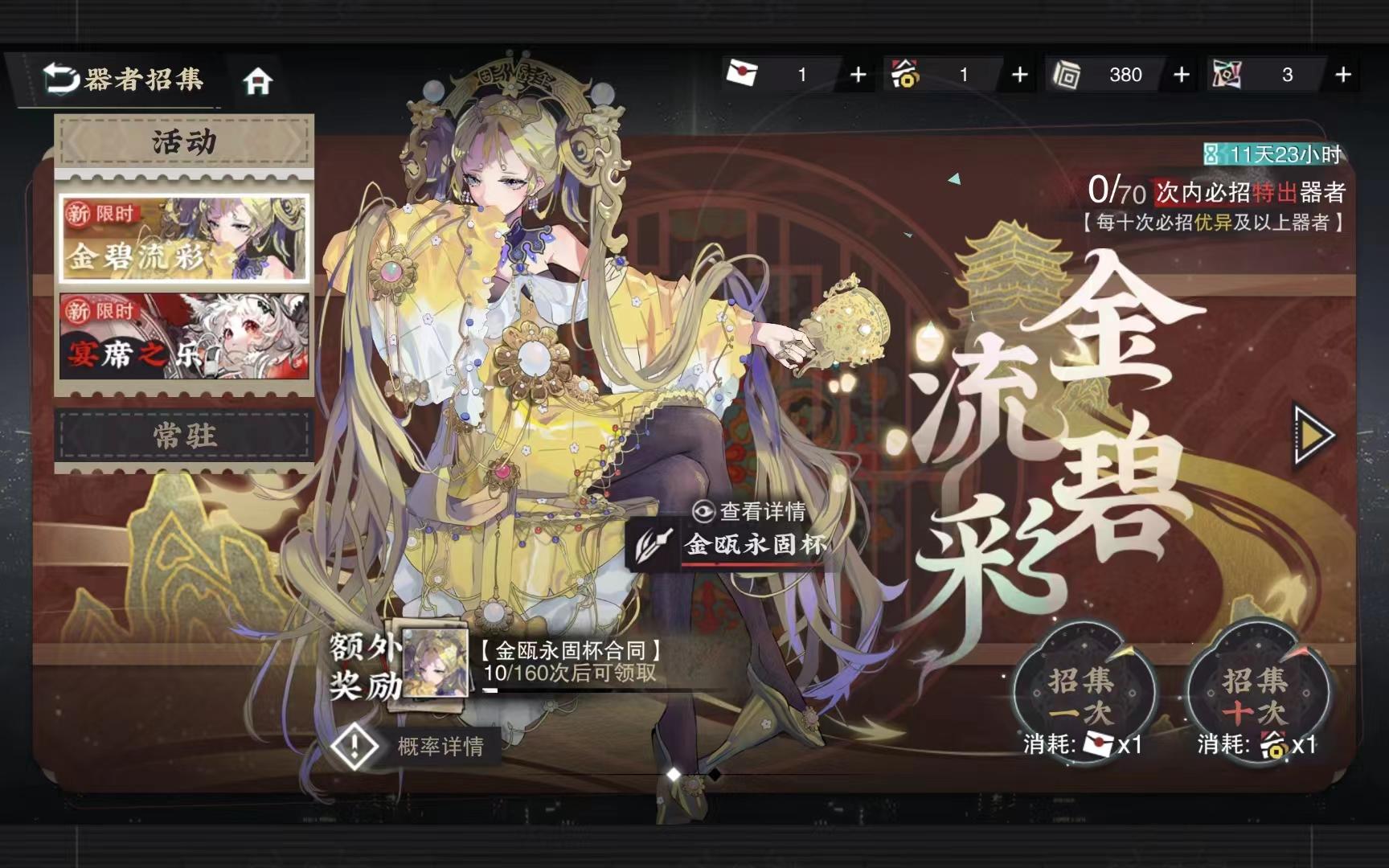 up一个十连利簋加金瓯,新手池又是一个利簋,然后去抽猫猫的时候先是歪了个鎏金,结果下下一个十连猫猫就来了