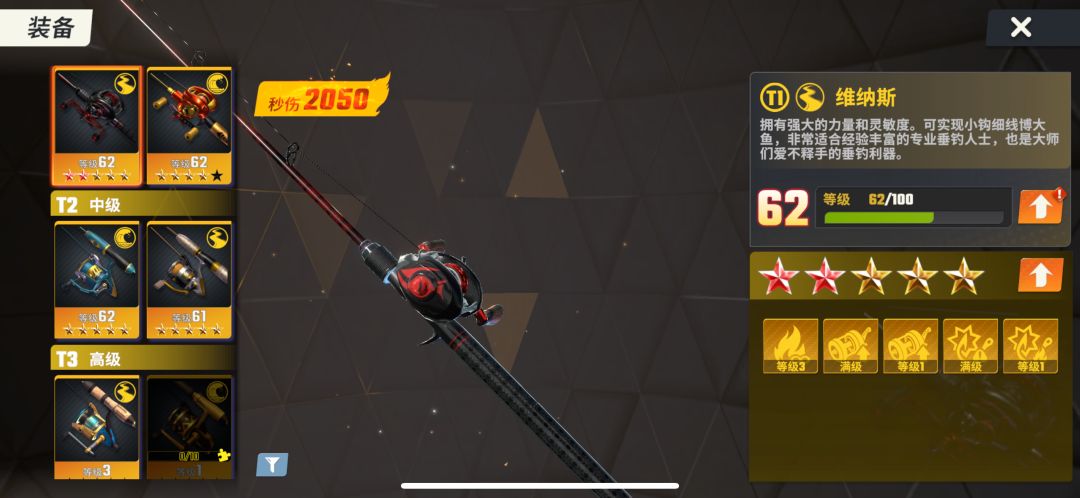 3.如果不是氪金玩家,金箱最好是存着,等达到30级再开,22级以后升级速度会比较慢,30级再开箱子,里面的鱼竿够用很久,紫色和金色鱼竿,升级到55级左右就是够用的,可以完美过渡到30级。