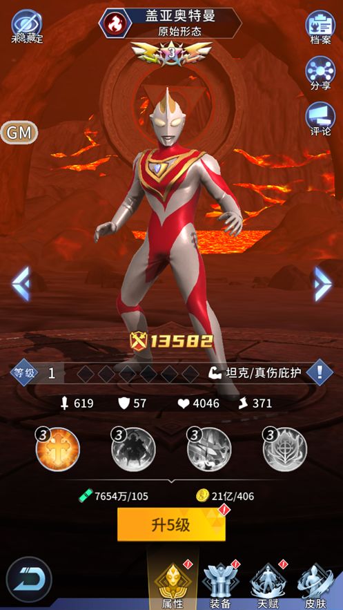 盖亚之光:被动技能,具备强大的意志和不屈的精神,生命提升40%,防御提升20%,免伤提升10%;自身生命值每降低3%,免伤提高1%。