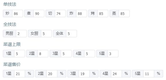 全菜谱无专精,总分3173471,五火菜谱上限17不适用【需要补专精】