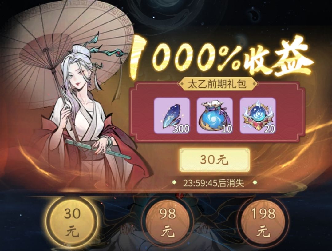 11.太乙境界突破限时礼包道具为宝坛灵玉,宝坛系统的加成比较保值,有一定氪度的玩家推荐购买此限时礼包。