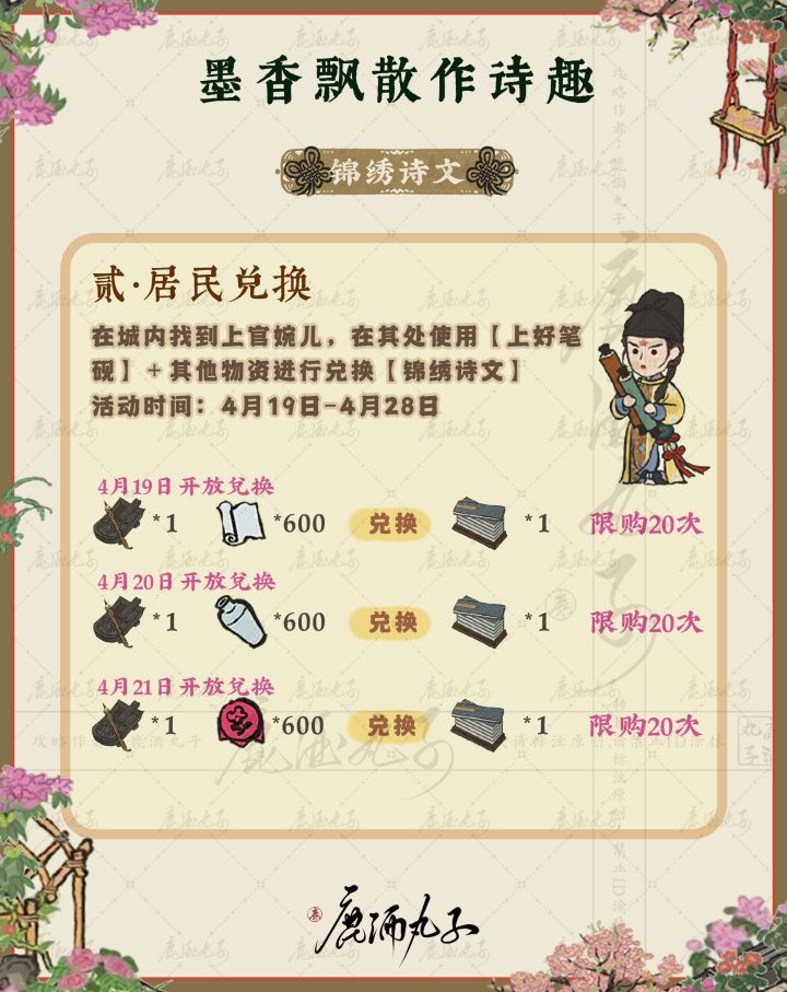 🌸在城内找到上官婉儿,在其处使用【上好笔砚】+其他物资进行兑换【锦绣诗文】