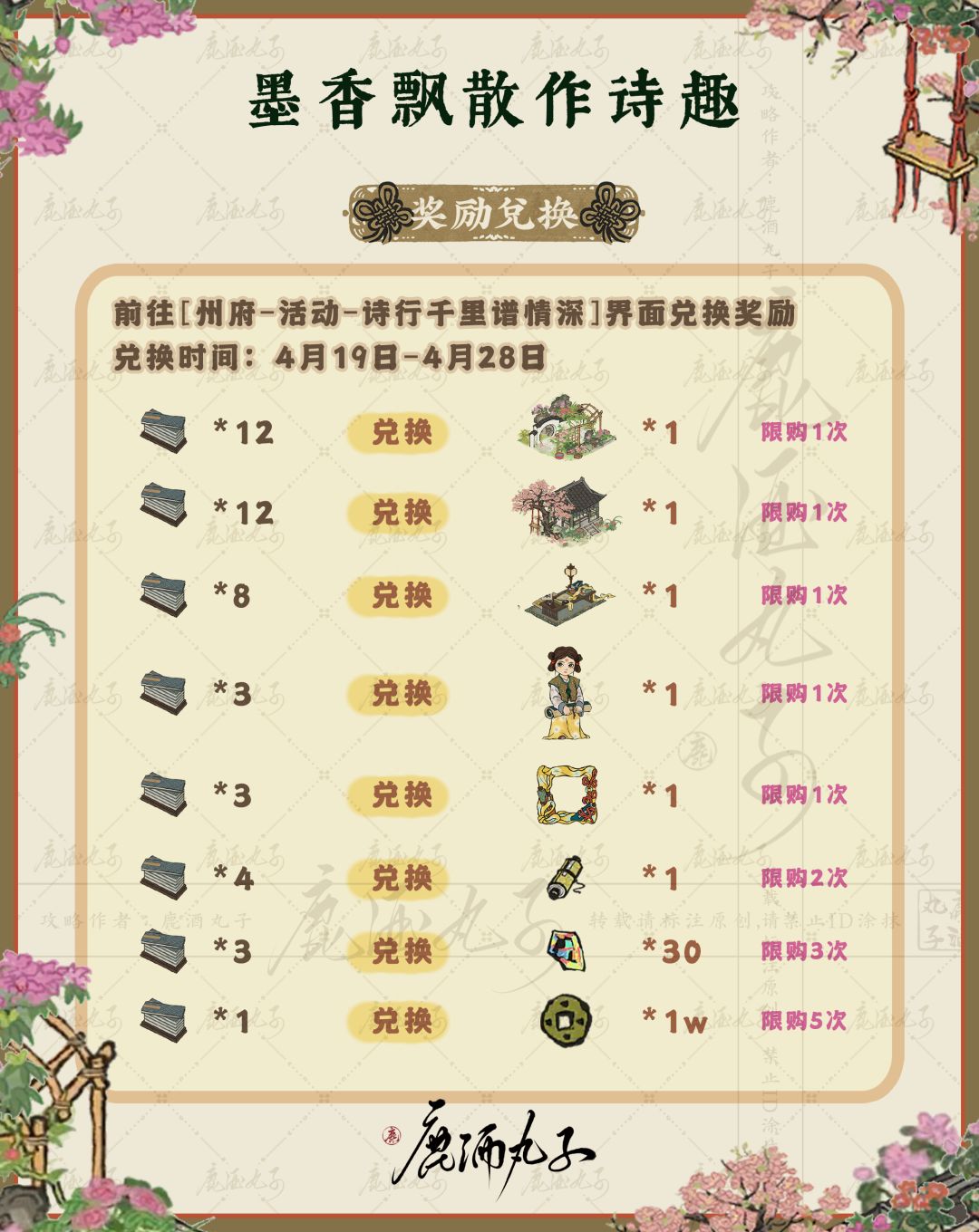🌸前往[州府-活动-诗行千里谱情深]界面兑换奖励