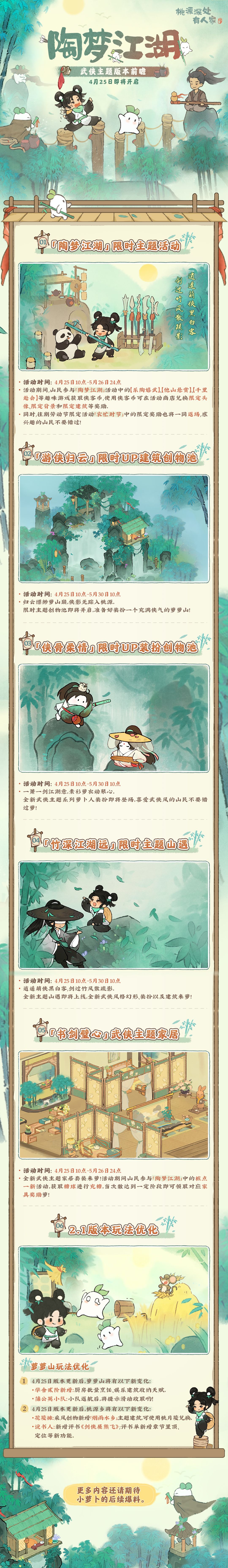 全新武侠主题版本「陶梦江湖」4月25日即将侠气登场,就让小萝卜给大家带来新版本的前瞻爆料内容萝!