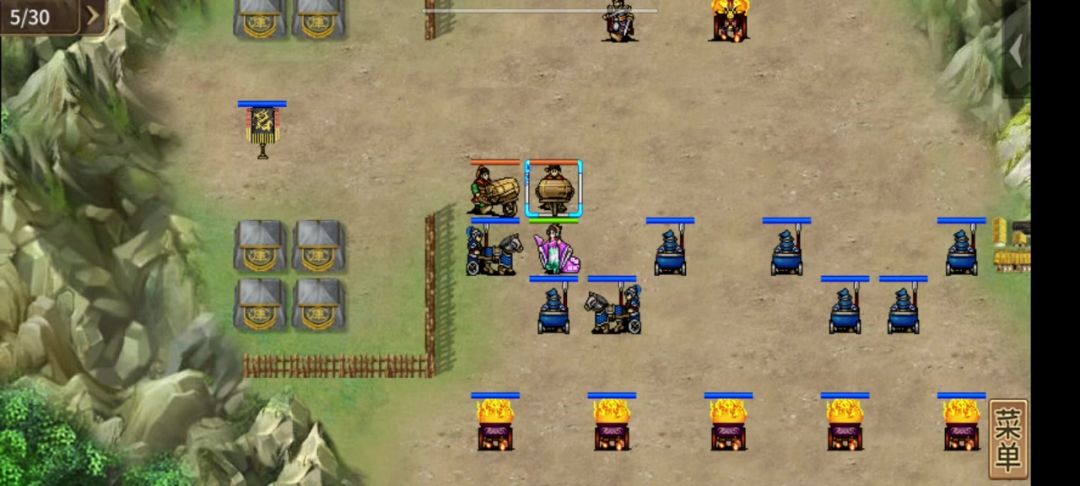 最后一回合清完堵路敌军,保证我军粮车同回合过关。