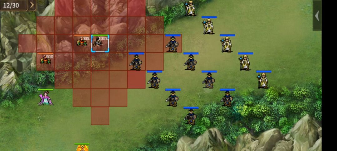 下回合,司马远程治疗拉跑得最远的粮车,大乔、刘备、李明走到粮车前面用命挡敌军的刺客伏兵。注意看一下粮车行动范围,不要让他被同时打到。
