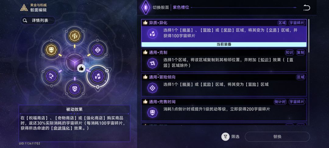 公司时刻的被动效果是在任何商店中返还30%消耗的碎片(这里暂时可以理解成7折购物),但要想胡,我们不能一开始就无脑走交易
