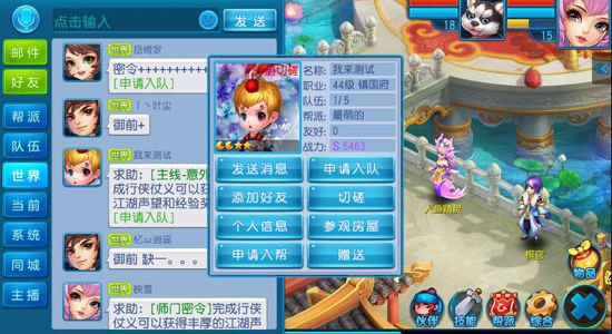2.点击对方人物角色走到他身边,右上角有个人物头像,点击人物头像出现你可对对方进行的操作,点击添加好友。
