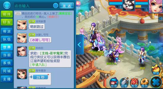 点击左下角“友”字,即可点开聊天栏,在聊天栏选择相应频道,在上方输入想说的话点击发送即可。