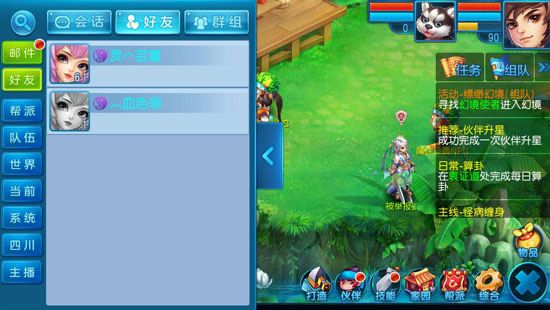 3、添加好友后点开聊天栏好友一栏,即可与对方发送私聊,在线且友好度越高,则在“好友”分页当中的排行越靠前。