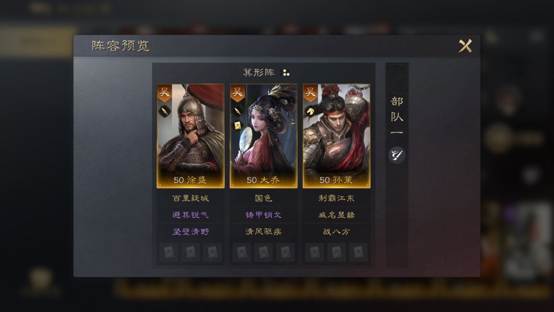 平民新手开荒阵容推荐优先选择“徐盛、大乔、孙策”。