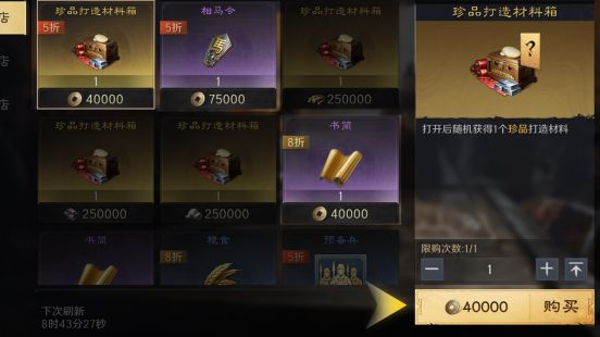商店里有日常商店、贡献商店、武勋商店区分,每个商店都可以获取铜币,需要对应的资源兑换。