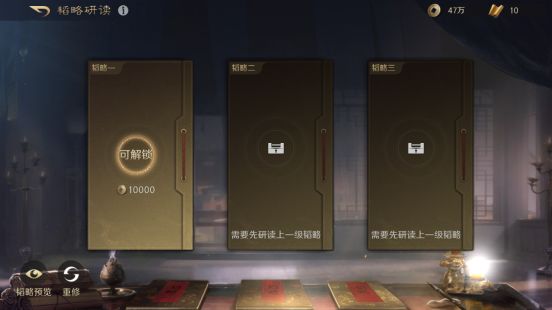武将25,30,35级时会开启一栏韬略,解锁条件分别是1万,3万,5万铜币