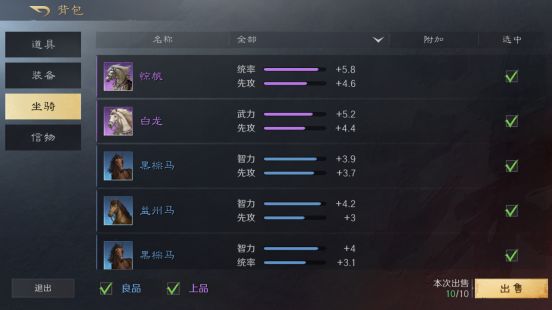 在背包的坐骑选项里,可以批量出售坐骑换取铜币。