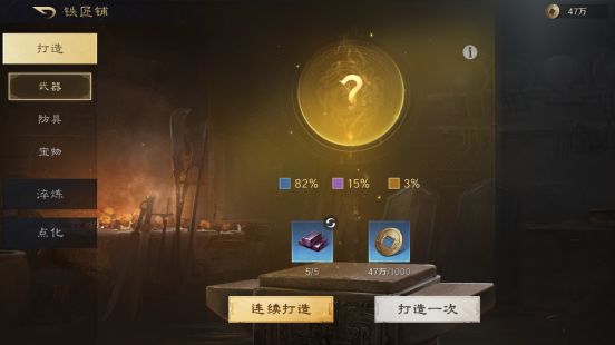 建造铁匠铺后,可消耗打造材料和铜币来打造装备。