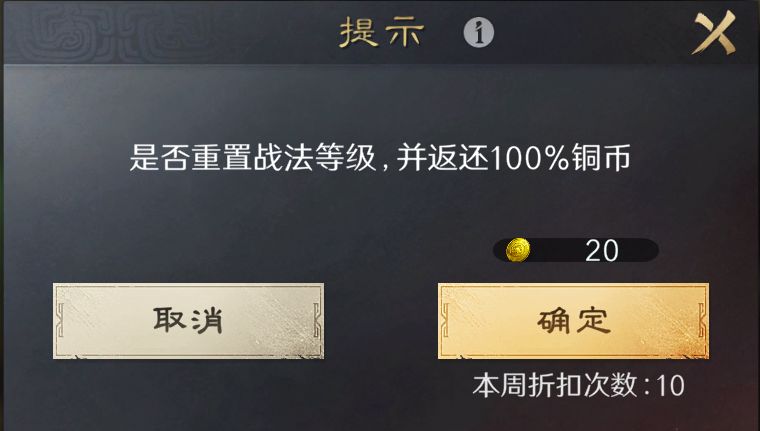 4.每周战法重置有10次机会,10次机会用完后,则需要消费黄金重置;