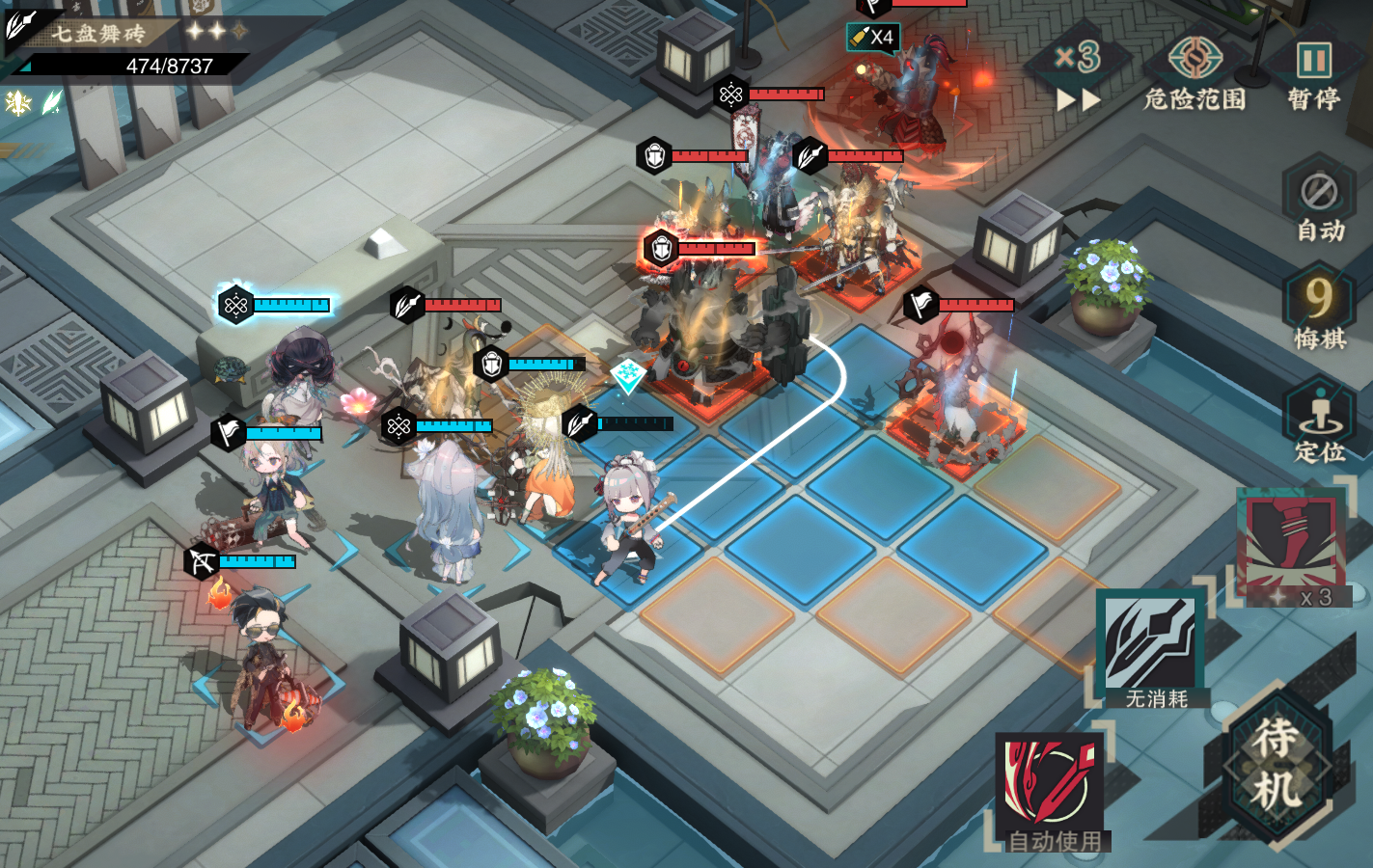 实际战斗中,由于我方队友行动能力不一,仅靠天蓝瓶这位移动能力仅为3的器者,显然无法做到迅速抵达队友身边并回复血量。因此,战斗开始前,建议收藏家们尽量将天蓝瓶放置在我方队友中心以便支援队友。