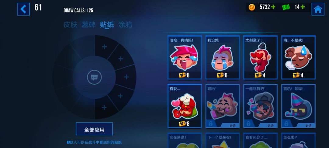 除了作战的小tips,进入英雄皮肤页面还发现墓碑、贴纸和涂鸦,那么怎么获得这三类物品呢?当然是使用新潮券了
