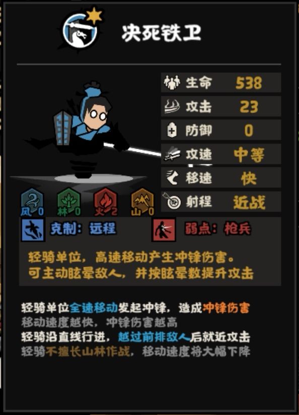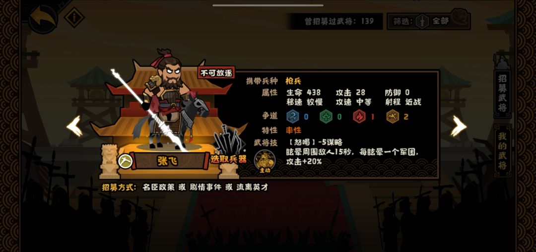 在山林中配合张飞的武将技,能打出较大的优势,同时也可以降低一定的战损。