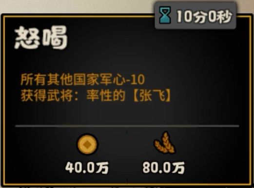 再回到武将技本身,张飞的武将技需要5点谋略,游戏内正常情况下每8s回复1点谋略,张飞开局启动武将技需要40s的拉扯。